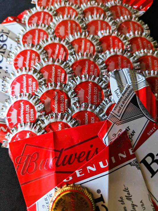 Budweiser beer, Fish wall hanging , Bottle caps, beer cans.